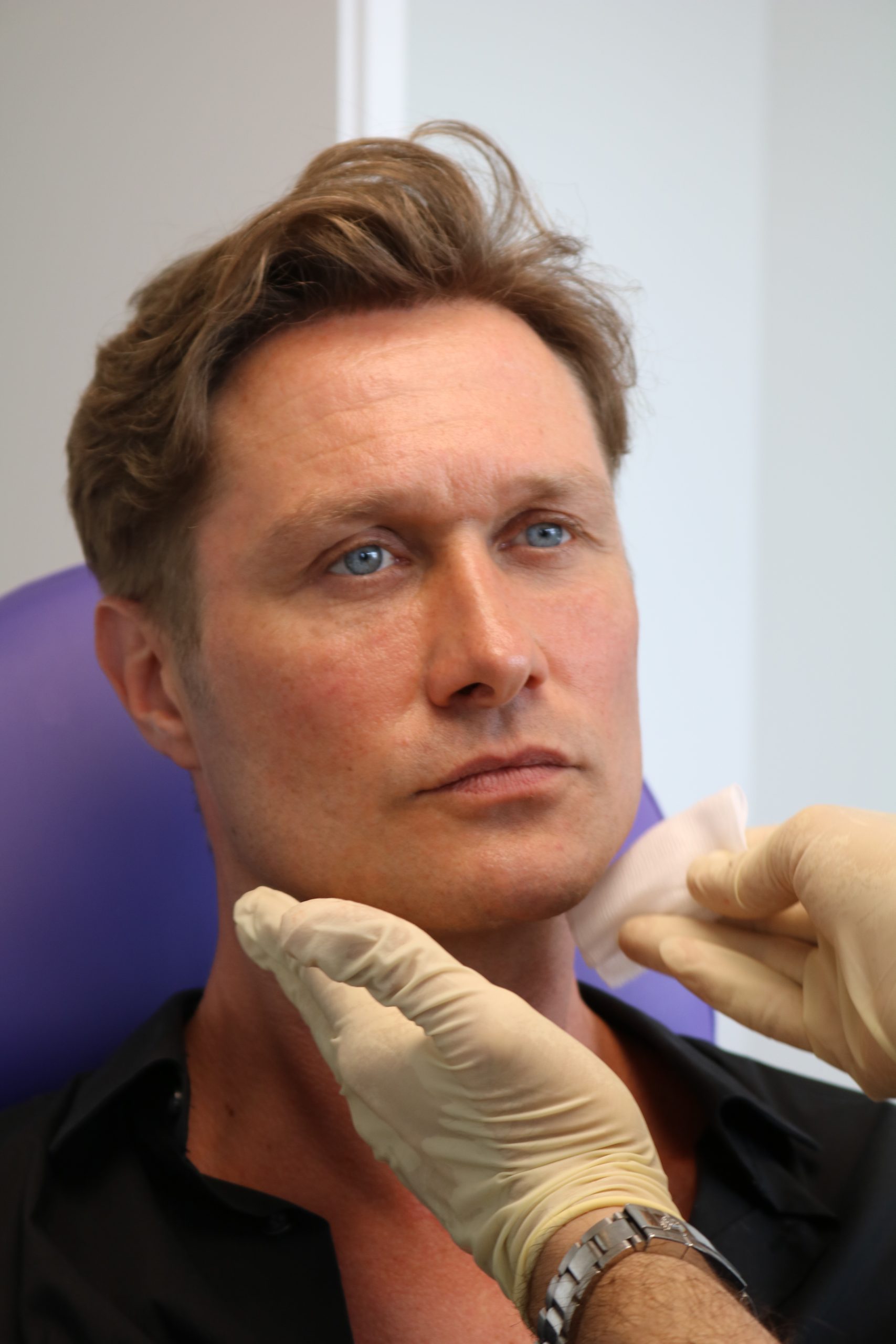 Dr. Djalaei, der den Mascu-Look entwickelt hat, hat mir erklärt, dass er bei seinem Konzept insbesondere auf die die Wangen- und Kinnpartie des Mannes achtet: Die Konturen seien das Fundament eines Gesichtes und müssten bei einem Mann markant und männlich sein. Bei mir, meinte er, würde das noch super aussehen, da müsste er nur ein kleines bisschen nachhelfen – was mir wirklich auch sehr lieb war, weil ich ja meinen Typ nicht verändern wollte. Ich sehe seine Behandlung als eine Art Kunst, er modelliert sozusagen das Gesicht.