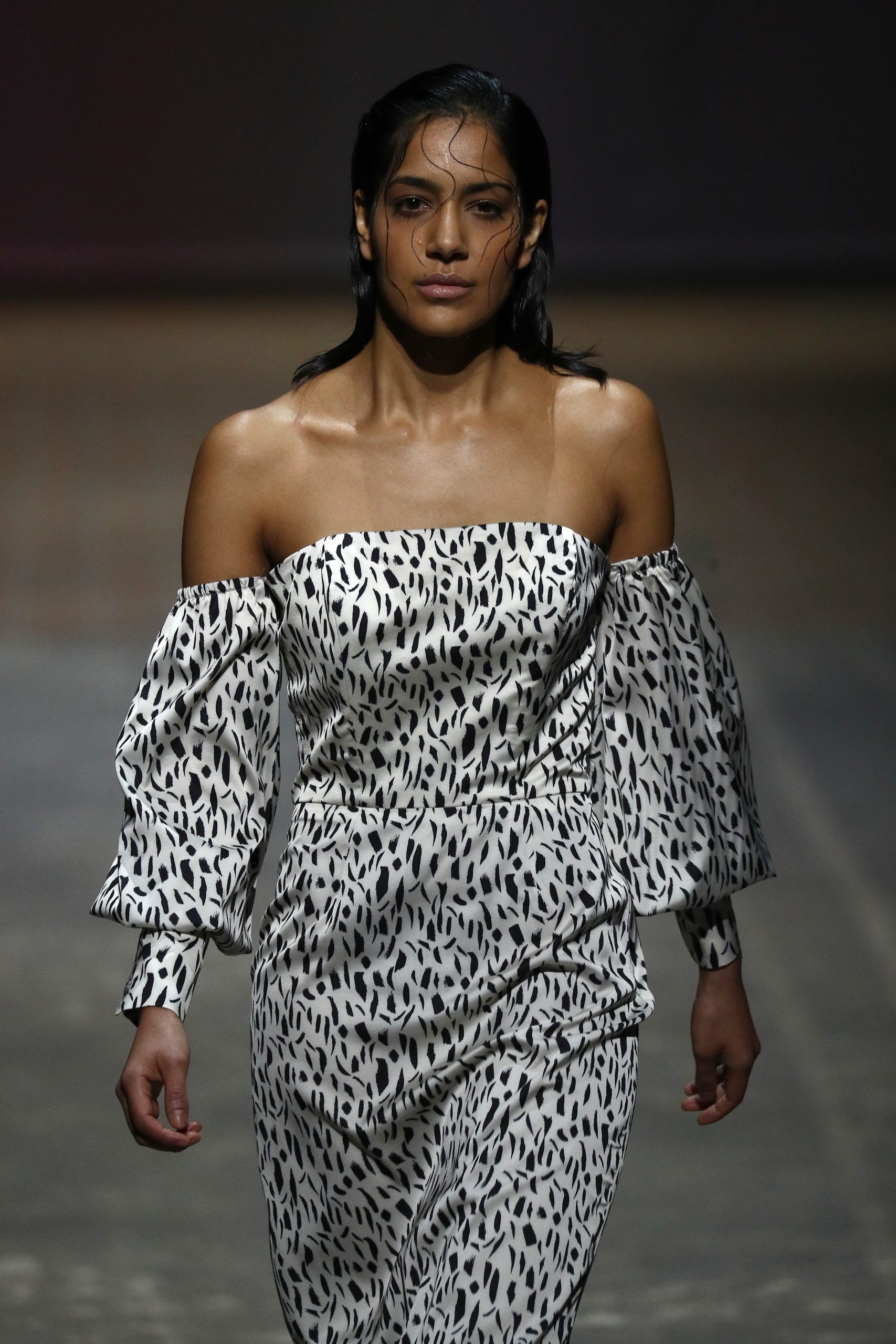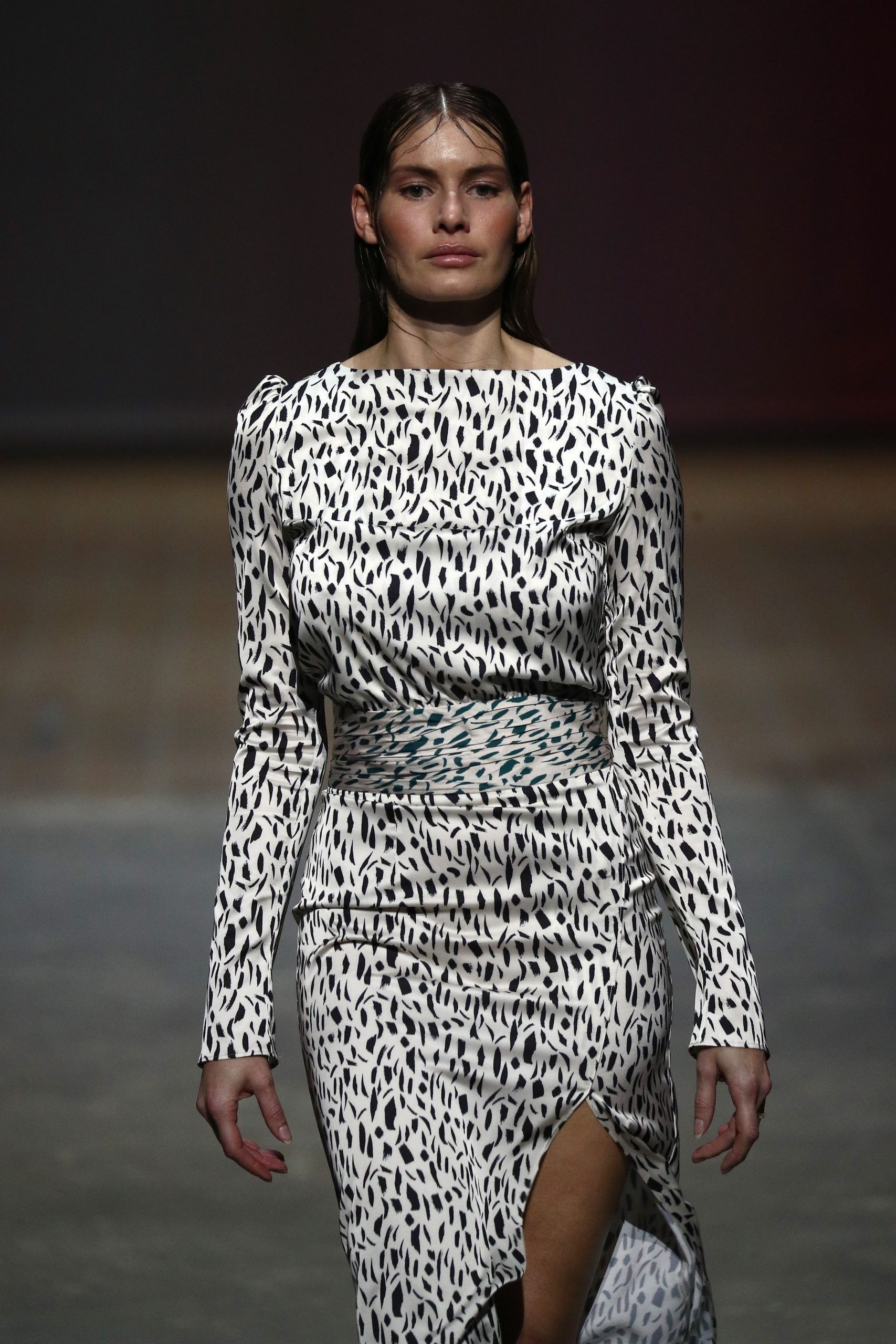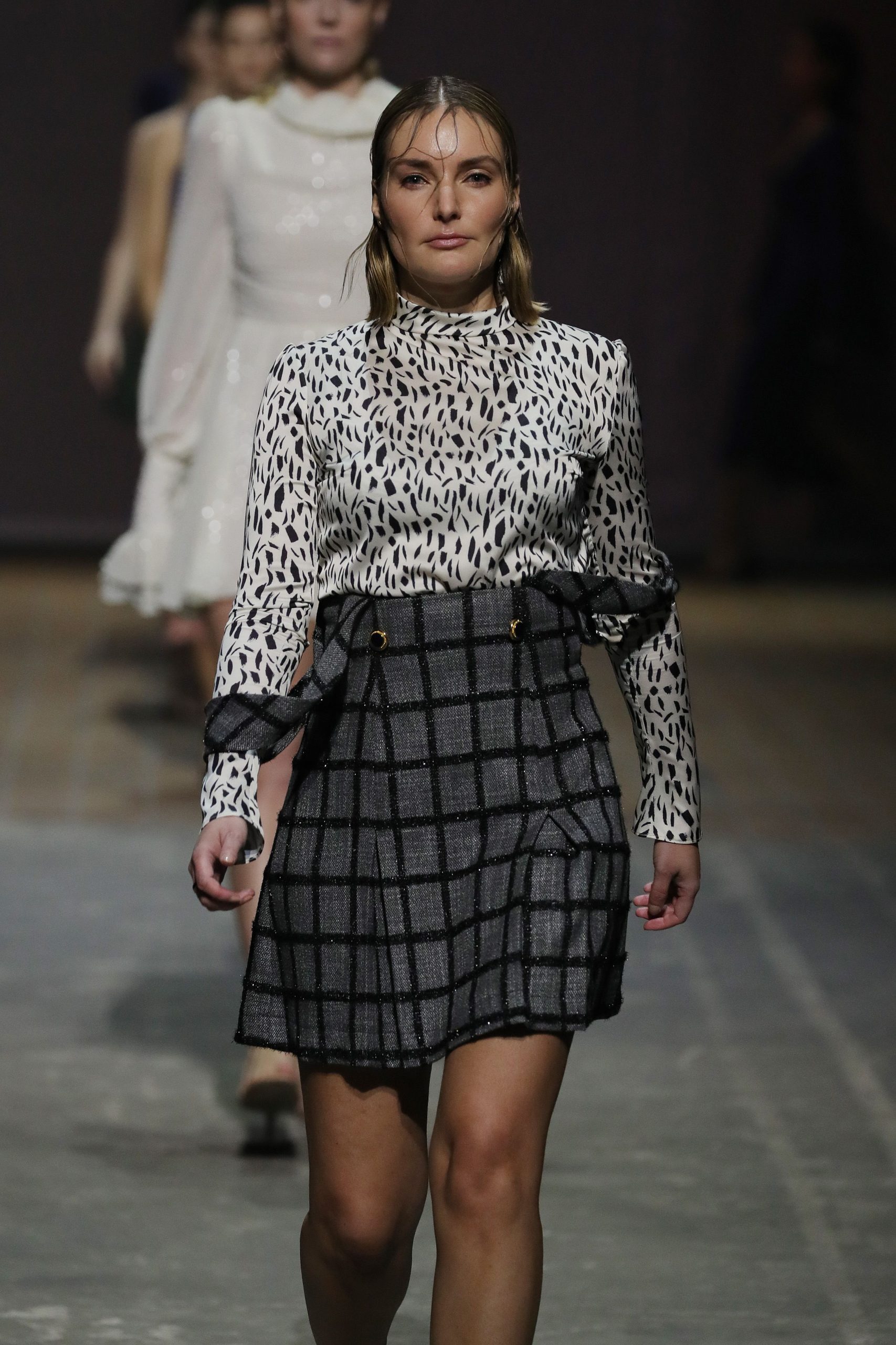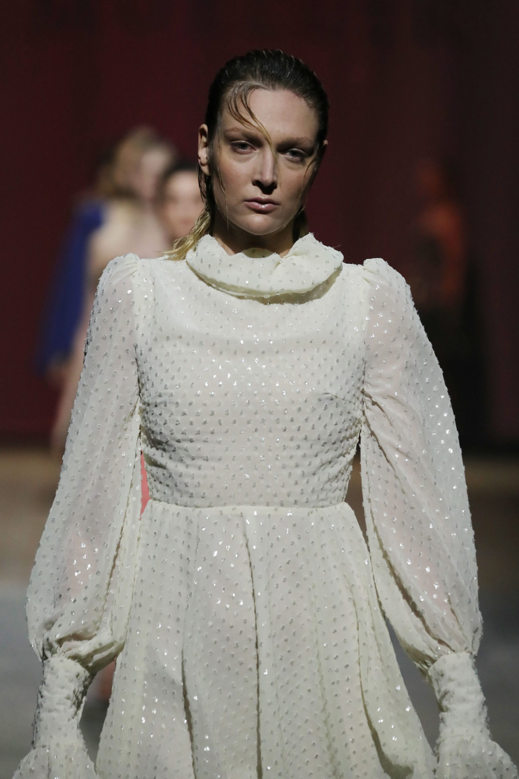 Model Em Glasser at the Lana Mueller show during the Mercedes-Benz Fashion Week Berlin –Photo by Andreas Rentz/Getty Images for MBFW