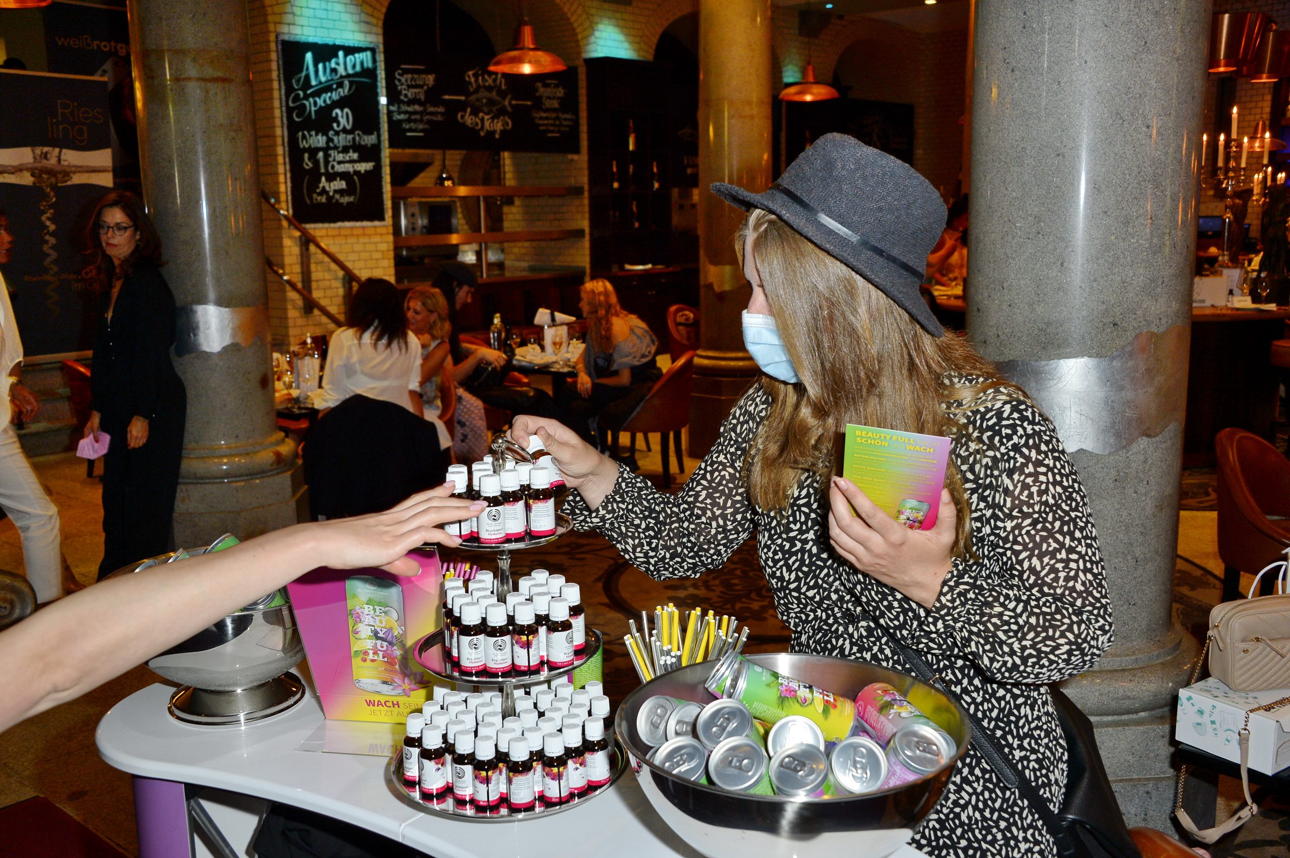 Korrespondierend zum Thema „Sustainability“ kreierte Austernbank-Küchenchef Philipp Limoine köstliches veganes Fingerfood und das Land Rheinland-Pfalz steuerte exzellente vegane Bio-Weine bei. Außerdem durften die Gäste moderne CBO-Shots von IVVI-Company und Hyaluron-Lifestyle-Drinks von Dr. Niedermaier kosten. MedipharmaCosmetics präsentierte Up-To-Date Produkte in der eigens umgewandelten Fischtheke – und Bacardi zeigte, dass Martini-Cocktails auch heute noch sehr „en vogue“ sein können.