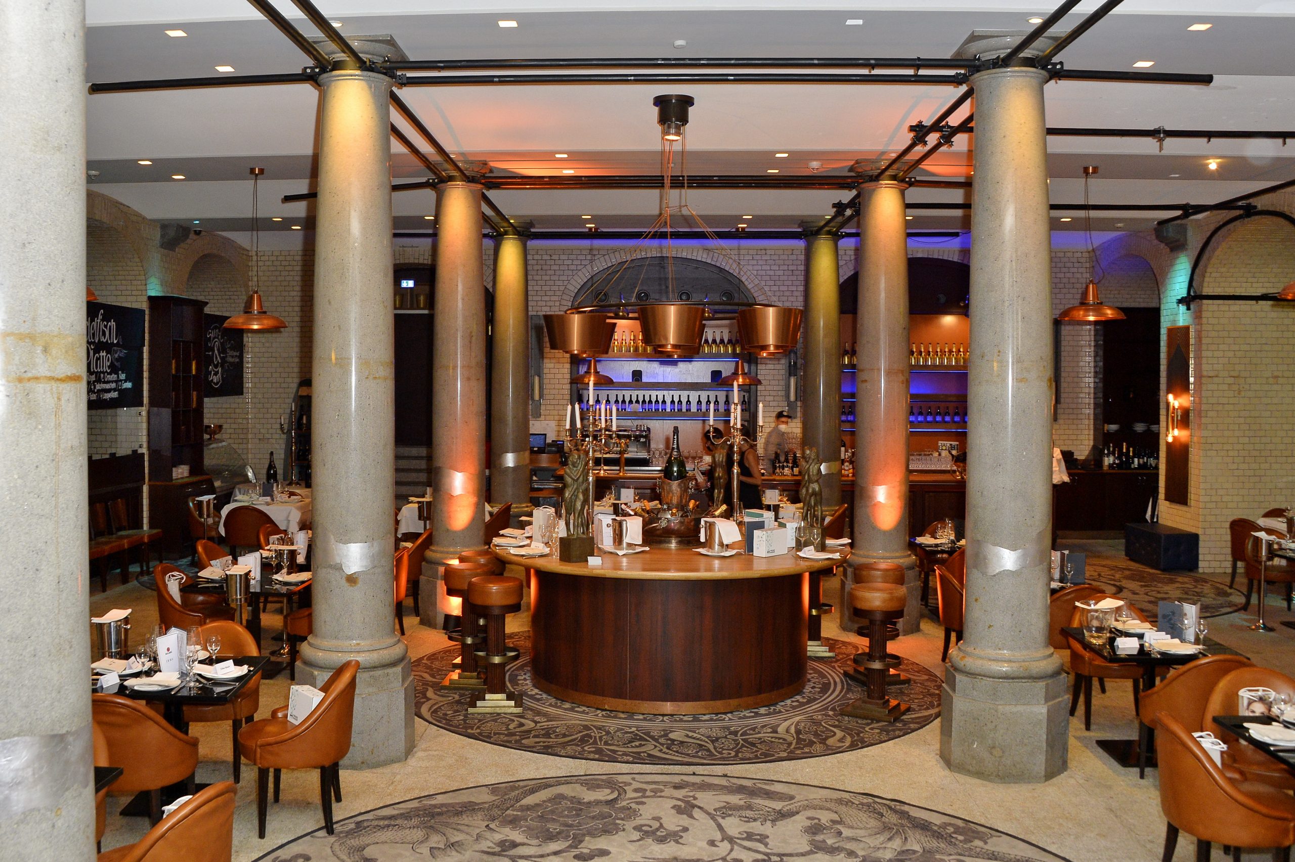 Die 100 Jahre alten Fliesen, mächtige Säulen sowie der Boden zeugen von der Geschichte des ehemaligen Tresorraumes – neu interpretiert und imposant in Szene gesetzt.